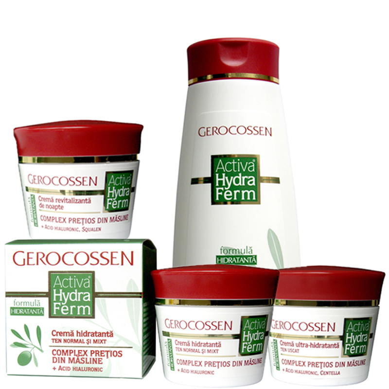 Pielea are nevoie inainte de toate de o curatare profunda, dar delicata. De aceea, primul produs il reprezinta laptele demachiant hidratant Activa Hydraferm, care datorita continutului de Aloe vera lasa tenul curat si luminos, fara a indeparta filmul hidrolipidic. Apoi am creat pentru dumneavoastra doua produse pentru zi. Crema hidratanta de zi Activa Hydraferm pentru ten normal si mixt, respectiv cea pentru ten uscat. Ambele contin si un filtru solar pentru protectia impotriva radiatilor UV si ne apara de radicalii liberi. In plus, fata de complexul pretios de masline si de acid hialuronic, prima se bucura si de un continut bogat de vitamina E, iar cea de a doua – de Centella. Dintr-un tratament complet nu poate lipsi insa si crema revitalizanta de noapte Activa Hydraferm. Cu formula sa pe baza de complex pretios de masline, acid hialuronic si squalen stimuleaza procesul natural de regenerare celulara din timpul noptii si ajuta la refacerea echilibrului pielii. Cu ajutorul acestor produse veti reusi sa aveti in permanenta o piele perfect hidratata, care sa straluceasca de sanatate, plina de tinerete si irezistibil de tanara si de frumoasa.