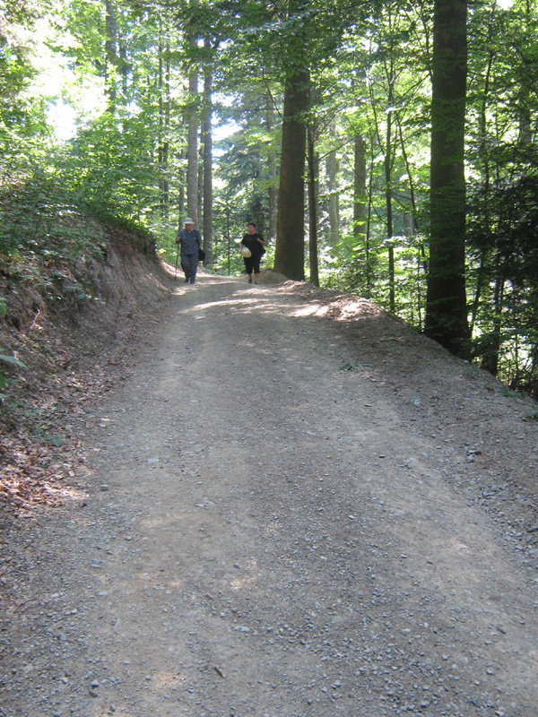 Condusi de calauza noastra, un tanar calugar, am vizitat ferma de struti, am vazut si caprioare. In curtea asezamantului se afla un iaz cu multe rate si gaste. A fost foarte frumos. Am avut timp sa ne plimbam, sa ne bucuram de priveliste. Prin padurea racoroasa din apropiere trece grabit un firicel rece de apa venind din munte. In linistea padurii se auzea trilul incantator al unor pasarele si fluturasii veseli dadeau viata padurii. Parea un loc neatins de om, un coltisor de natura pur. M-a impresionat stanca enorma care parca taia in doua padurea. Am intalnit busteni enormi, cum nu am mai vazut. As fi putut ramane o viata acolo. Curtea este plina de tot felul de trandafiri, crizanteme, garofite. Ce m-a impresionat mult a fost casa in care locuieste o maica batrana, care se ocupa de oaspeti si bucatarie. Mi s-a parut a fi o casuta din poveste, cu cerdacul plin de flori.