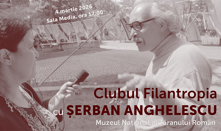 Muzeul Național al Țăranului Român vă invită miercuri, 4 martie 2026, de la ora 17:00, în sala Media, la evenimentul Clubul Filantropia cu Șerban Anghelescu, care ne va citi din propriile sale texte.