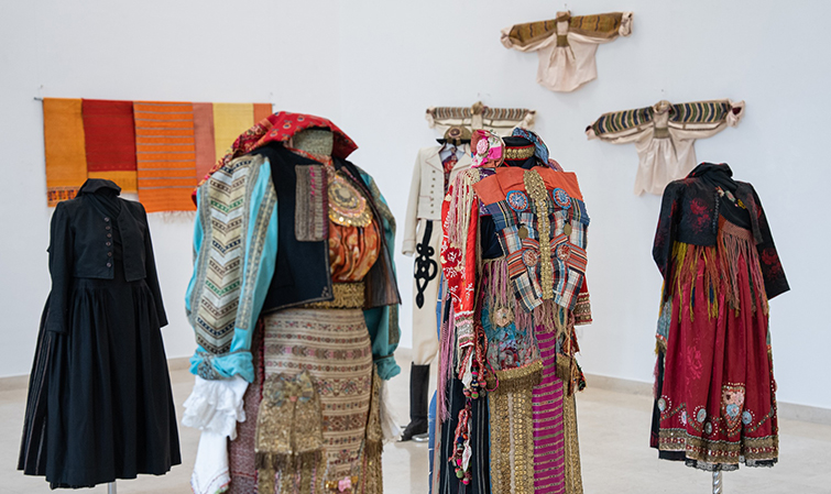 Expoziția cuprinde ansambluri vestimentare de sărbătoare, pline de culoare și strălucire, pentru fete nemăritate, fete logodite, neveste tinere, femei mai în vârstă, pentru sezonul cald sau pentru cel rece. Sunt prezente și ansambluri vestimentare specifice bărbaților, caracterizate printr-un croi de tip orășenesc, iar cămășile pe pânză albastră sunt o marcă zonală.