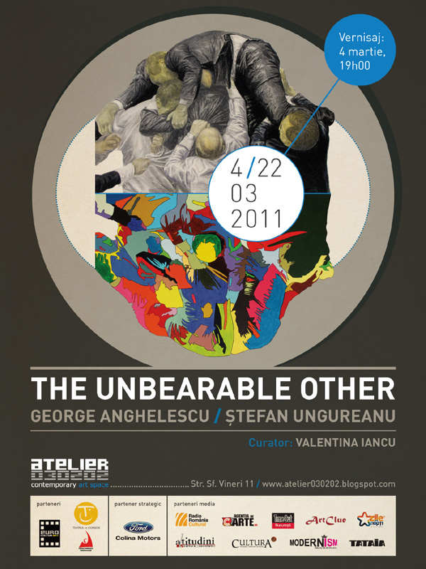 Vineri, 4 martie 2011, ora 19.00, la Atelier 030202 (Sala Noua a Teatrului de Comedie din Bucuresti), str. Sfanta Vineri nr. 11, Bucuresti, va avea loc vernisajul The Unbearable Other George Anghelescu & Stefan Ungureanu.